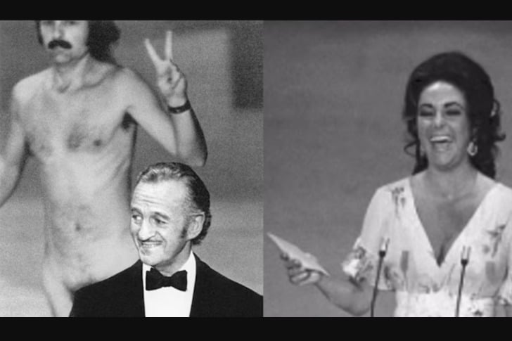 在大衛·尼文(David Niven)介紹伊莉莎白·泰勒(Elizabeth Taylor)頒發最佳影片獎的演講中,一位留著小鬍子的攝影師羅伯特·歐佩爾(Robert Opel)赤身裸體地從大衛·尼文身後衝過舞台,還比了一個和平手勢。現場觀眾震驚尖叫,樂隊也開始奏起一首不合時宜的曲子。尼文只能在直播中迅速反應,以一句關於該男子「不足之處」是他一生中唯一笑點的妙語來化解尷尬。