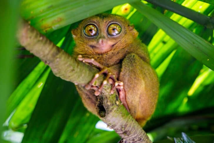 フィリピンメガネザルは、人間の拳よりも小さく、大きな目を持つ霊長類で、その巨大な金色の目は脳よりも大きいです。毛皮は柔らかい灰褐色で、長く細い指の先には吸盤状のパッドがあり、物をつかむのに役立ちます。フィリピンの熱帯雨林にのみ生息しています。