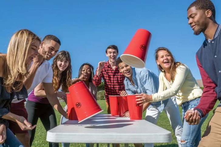 테이블을 따라 줄지어 팀으로 나눕니다. 각 선수는 플라스틱 컵에 맥주를 채우고 완전히 마신 다음, 빈 컵을 테이블 가장자리에 뒤집어 놓고 한 손으로만 컵 테두리를 튕겨 똑바로 세웁니다. 가장 먼저 릴레이를 마친 팀이 승리합니다.