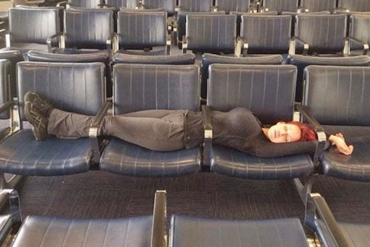 This woman really deserves kudos for her unconventional way of getting comfortable. She was clever enough to shimmy herself under those armrests. Here’s hoping she had no trouble getting back out when it came time to finally depart.