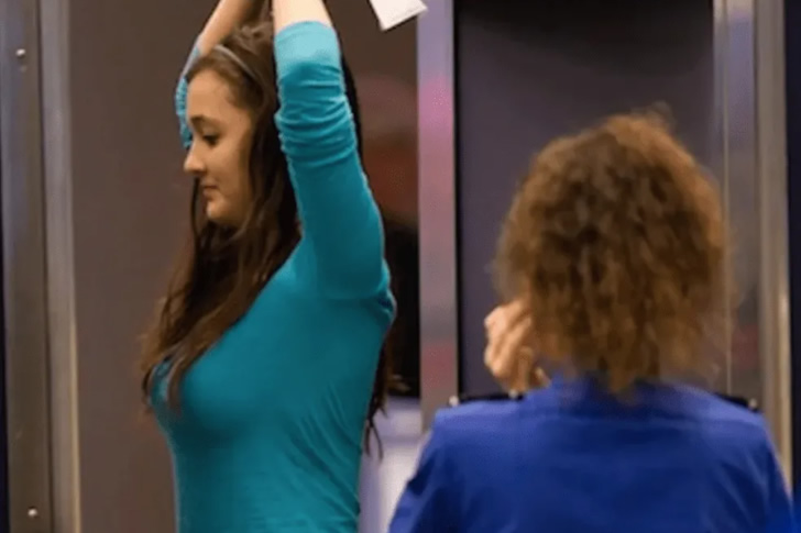 However, there’s a positive side to it: the woman in this situation is smiling lightheartedly during the scan. This might show that she accepts the inevitable and maintains a positive attitude amidst the complex airport procedures.