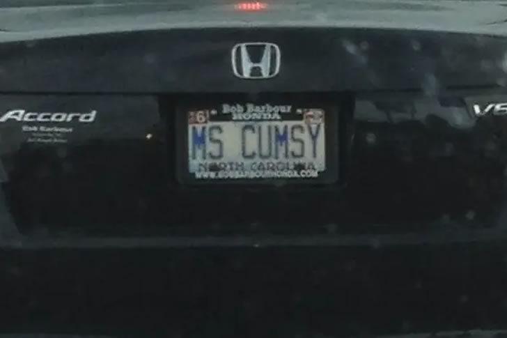 This North Carolina driver probably just wanted to showcase their clumsy side with “MS CUMSY” on their license plate. Unfortunately, they may not have realized how that particular spelling choice might be interpreted by the general public. What looks like a harmless nod to being accident-prone ends up reading like something a bit more eyebrow-raising.