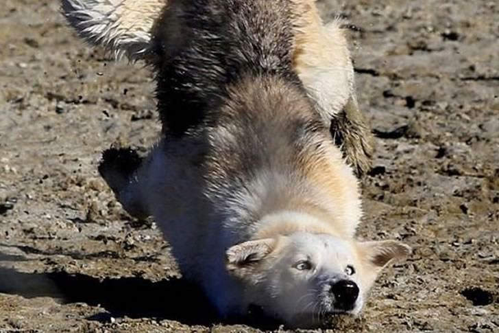 What makes this moment so memorable is the absolute perfection of the timing. Caught between leaping and landing, the dog’s motion and expression are suspended in one gloriously awkward instant. It’s a reminder that no matter how agile or energetic, we all have those face-plant moments. Fortunately for us, they sometimes make for the best pictures—and this one is a muddy masterpiece.