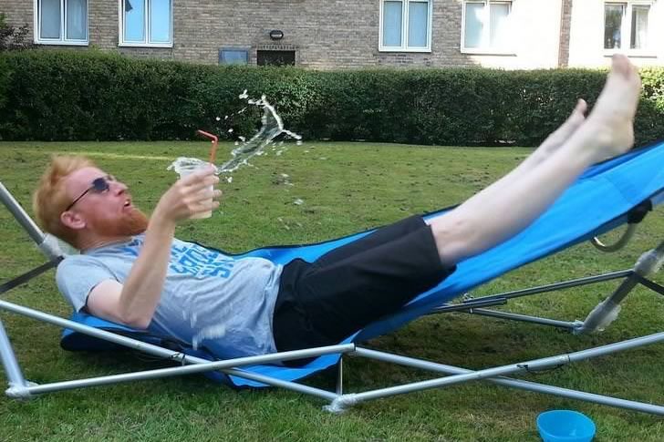 What makes this image so hilariously perfect is the trajectory of the liquid—suspended in midair with the straw still sticking out as if mocking him. The stunned look on his face, frozen between relaxation and panic, tells the whole story. It’s a reminder that even the most serene setups can go south in an instant. Hammocks may promise comfort, but they’re always one misstep away from turning your day into a viral moment of fail.