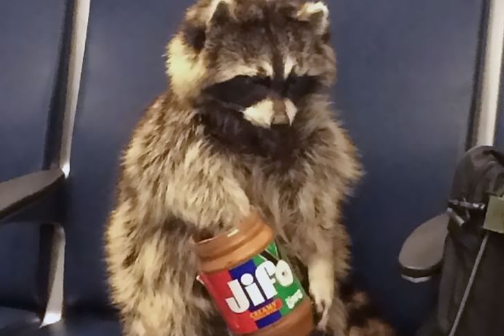 Some onlookers debated whether it was real or a cleverly placed taxidermy prank, but the peanut butter clutch added a touch of realism that made everyone do a double take. Whether it wandered in or was part of an elaborate joke, the raccoon’s nonchalant pose and deadpan expression made it the unofficial mascot of that terminal for the day. It’s not every day you’re outdone in airport patience and snack preparedness by a raccoon.