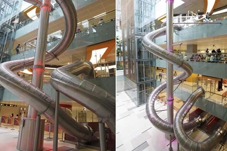 This photo from Singapore’s Changi Airport proves that practicality and fun can go hand in hand—even at an airport. Instead of simply relying on stairs or escalators, travelers here can opt for a massive spiral slide to zip down multiple floors in seconds. It’s a brilliant, slightly absurd solution for weary passengers who just can’t be bothered to walk anymore. At the same time, it injects a bit of childlike joy into a space usually associated with stress, long lines, and tight schedules.