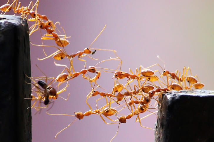Army ants don’t just march—they engineer. When confronted with gaps or tricky terrain, they create living bridges using their own bodies. These ant structures can stretch over air, water, or leaves and are formed and adjusted in real-time as the colony moves forward.