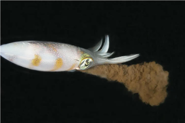 Squid have one of the simplest yet most effective escape tactics: the ink-and-dash. When threatened, they squirt a cloud of ink that temporarily blinds or confuses the predator. Some species even release a blob of mucus-filled ink called a “pseudomorph” that looks like the squid itself, buying them extra time to jet away.