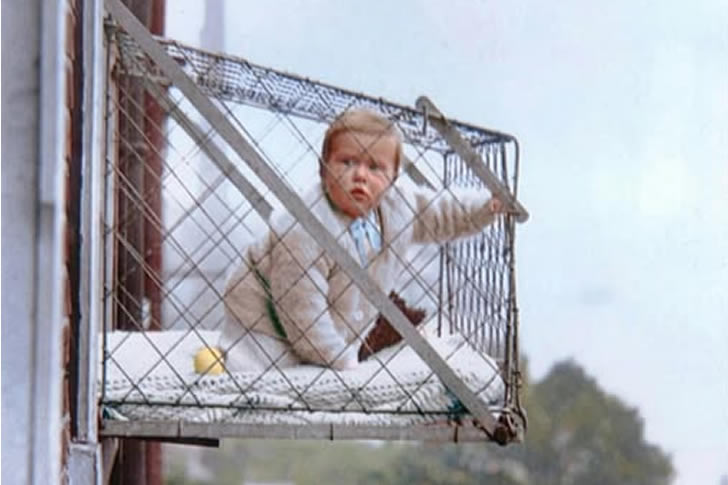 Neighbors freaked out, pigeons hovered suspiciously, and some cages even included a sunshade. The trend didn’t last long, mostly because gravity exists. Today, these baby boxes live on as proof that even well-meaning parents once confused innovation with insanity.