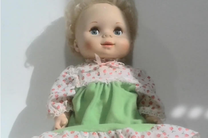 This early 1980s doll reacted to sound—specifically, crying when a room got too loud. With big glassy eyes and a mouth that moved slightly, Sobbing Suzy would begin weeping softly, then escalate to sobbing and muttering incoherent words. At night, the effect was bone-chilling.