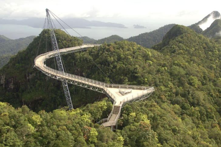 マレーシアのリゾート、ランカウイ島にあるスカイブリッジ。2005年に建設された比較的新しい橋で、名前の通り空中にかけられています。全長125mの橋で、山頂にかけられており、海抜にすると660mの位置です。この橋を渡るためには、最初にケーブルカーに乗らなければいけません。6人乗りのケーブルカーで、登り後半は崖をほぼ垂直に登っていきます。