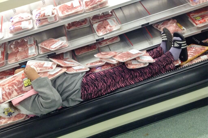Manche Menschen haben wirklich schwierige Arbeitszeiten. Also, wenn sie die Gelegenheit haben, sich zurückzulehnen und zu entspannen, nutzen sie diese Zeit überall und zu jeder Zeit. Diese Frau ist anscheinend an einem Punkt angekommen, an dem sie eine Pause brauchte und Walmart als die perfekte Möglichkeit ansah, sich zu entspannen.