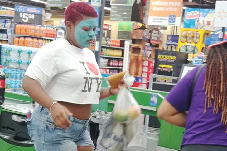Es ist nicht selten, dass wir das benötigte Zeug genau in den ungünstigsten Momenten vergessen. Schau dir diese Frau an, die sich gerade eine Gesichtsmaske aufgesetzt hat und dann plötzlich nach Walmart gelaufen ist, um ein paar Dinge einzukaufen.