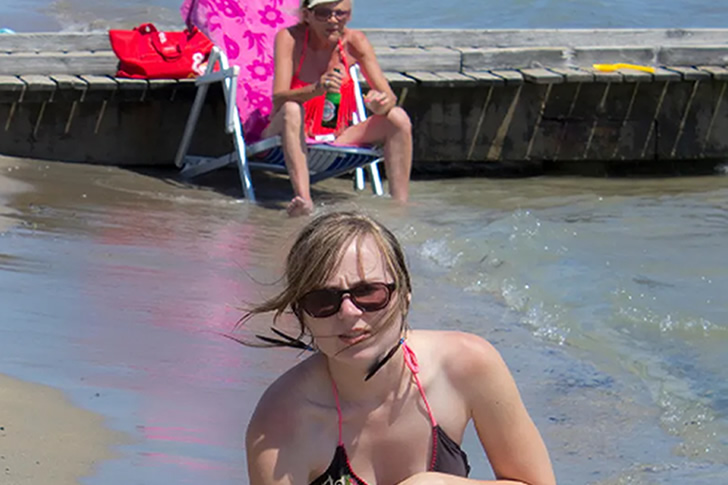 Manchmal ist das Leben einfach darum, zu lächeln und die Momente zu genießen, auch während des Urlaubs. Diese junge Frau hatte lediglich den Wunsch, ein cooler Strandfotos online zu stellen. Leider befand sich direkt hinter ihr eine ältere Dame, die sich entspannt mit einem Bier vergnügte und so das perfekte Bild zunichte machte.