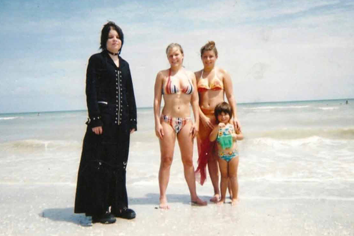 Es ist keine kurze Phase, Mama! Obwohl es vermutlich angenehmer wäre für diese junge Goth-Enthusiastin, die allschwarze Kleidung am Strand zu lassen. Unter der sengenden Sonne kann man sich schwerlich eine unbequemere Kleidung vorstellen!