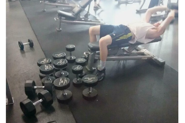 Gewichte horten? Das ist Fitnessstudio-Ausrüstung im Extremzustand, die Wege blockiert und Chaos stiftet. Melde es der Geschäftsleitung – Freunde hin oder her, dieses Chaos überschreitet die Grenze zum unverschämten Verhalten.