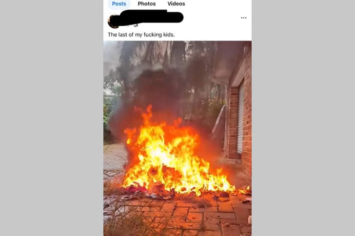 Der Dämon, der mich geboren hat, hat einfach all meine Habseligkeiten verbrannt, die ich nicht mitnehmen konnte, und es stolz auf Facebook gepostet, einschließlich teurer Geschenke von Freunden und Familie. Ich weiß ehrlich gesagt nicht, was ich sagen soll.