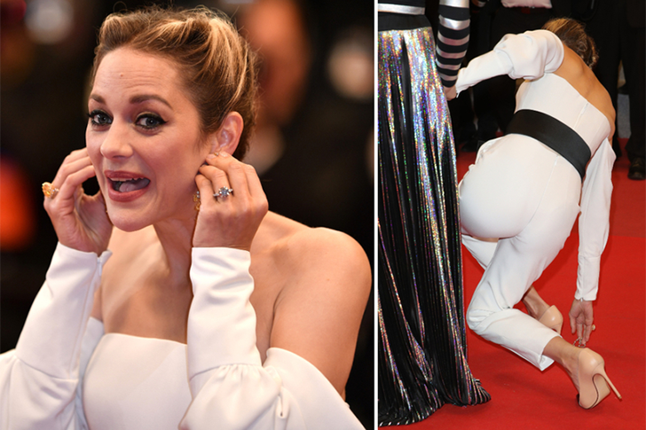 Als Cotillard über den roten Teppich lief, fiel einer ihrer großen, baumelnden Ohrringe ab. Die Schauspielerin entschloss sich, eine anmutige Ballettsequenz zu absolvieren, um den Ohrring aufzuheben. Sie schaffte es nicht nur, sich in ihrem engen weißen Jumpsuit zu beugen, sondern hielt sich auch an einem Zuschauer fest, der in der Nähe war, um das Gleichgewicht zu halten – wirklich eine anmutige Szene.