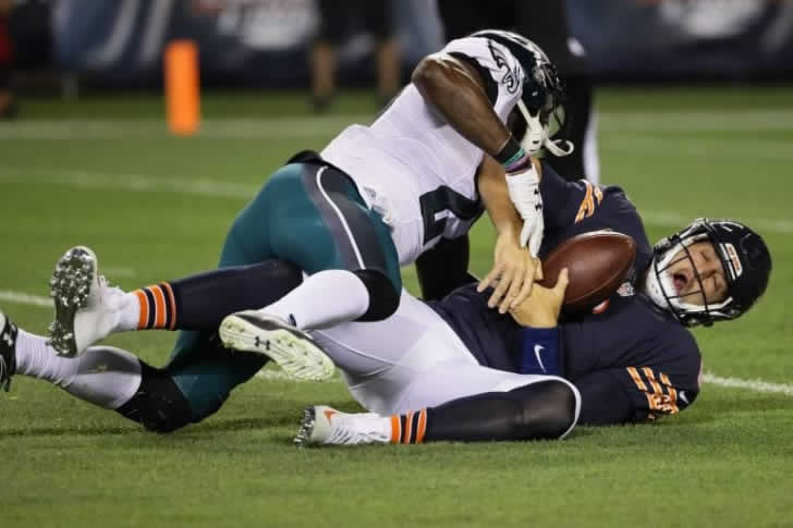 In einem packenden Spiel 2016 geriet Jay Cutler von den Chicago Bears nach einem Tackling von Malcolm Jenkins der Philadelphia Eagles auf den Boden. Zu dem Zeitpunkt war Jay noch mit einem verletzten Daumen außer Gefecht gesetzt, was die Sache nicht leichter machte.