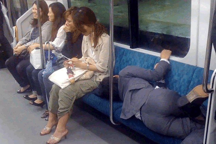 Auf dem Bild sieht es so aus, als sei jemand tief in das Land der Träume abgetaucht. Zugegeben, es ist vielleicht nicht das schickste Schlaferlebnis, aber wer sind wir, seine Traumreise zu stören? Das New Yorker Magazin erklärt, dass unser Körper eine Routine entwickelt, die uns signalisiert, wann wir arbeiten und wann wir ruhen sollen. So ist es also kein Wunder, dass viele auf dem Heimweg im Rhythmus des Zuges einnicken.
