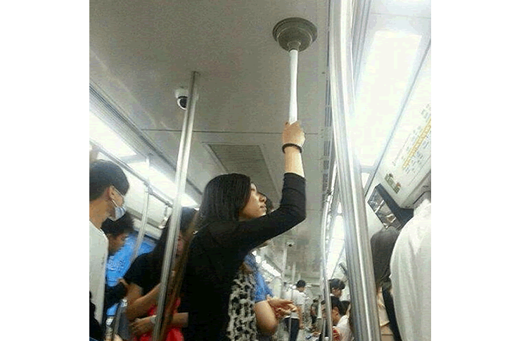 Es mag zum Lachen sein, aber man muss auch den Witz und Einfallsreichtum anerkennen! Die Frau hatte wohl genug von dem Gedränge und entschied sich für einen Pömpel als Stütze. Bei genauerem Nachdenken… warum auch nicht? Bei dem, was Pömpel so leisten, macht es irgendwie Sinn!