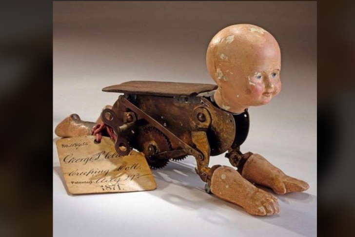 #28 喬治·彭伯頓·克拉克於1871年創作的《自然爬行嬰兒娃娃》。