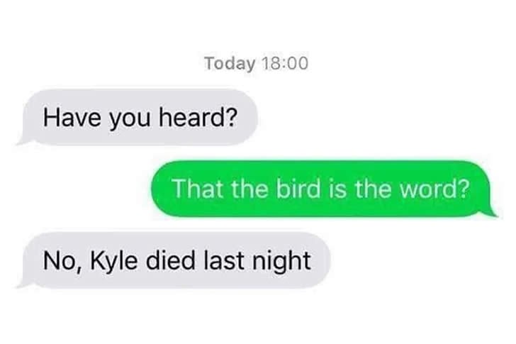 Intenta no encogerte: 47 fotos que pondrán a prueba tu cara de póquer al máximo 43. ¿No conoces al pájaro? Todo el mundo está hablando del pájaro. Advertisements Advertisements AnteriorSiguiente página Publicación original Advertisements PREV NEXT PAGE