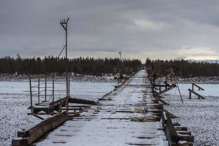 Le pont Kandinsky, qui enjambe la rivière Vitim dans la région de Transbaïkalie en Sibérie, a été initialement construit pour le transport ferroviaire et est maintenant réutilisé pour la circulation des voitures et des motos. Ce pont est considéré comme l’un des « ponts les plus dangereux du monde » en raison de son instabilité, et sa sécurité n’est pas garantie. Les planches du pont ont été renforcées, mais il pourrait s’effondrer à tout moment.