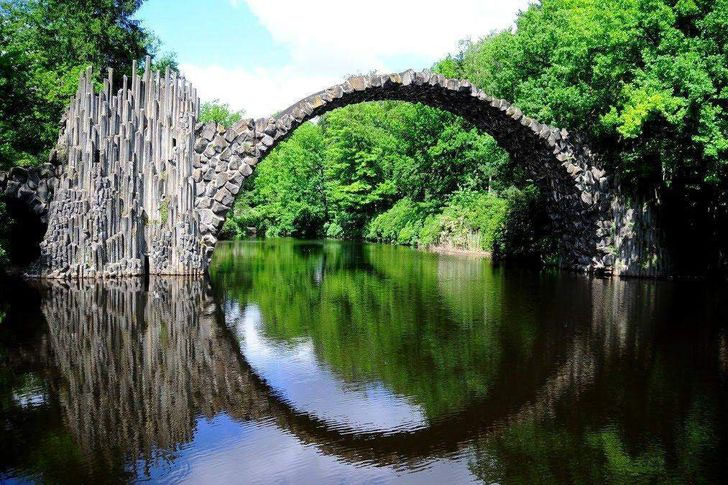 À une époque où il n’y avait ni voitures ni stations-service, le « Rakotzbrucke », appelé « Pont du Diable » en allemand, a été construit. Ce pont, en forme de demi-cercle, apparaît comme un cercle parfait lorsqu’il est réfléchi sur l’eau, donnant l’impression qu’il a été créé par une entité d’un autre monde, d’où son nom. Aujourd’hui, cette histoire est considérée comme intéressante et digne d’être partagée, et de nombreuses belles photos sont diffusées sur les réseaux sociaux.
