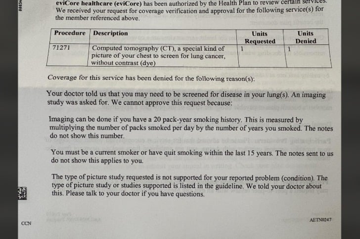 #34 Mon médecin veut vérifier mes poumons et a prescrit un scanner. J’ai été refusé parce que je n’ai pas 20 ans d’habitude de fumer.