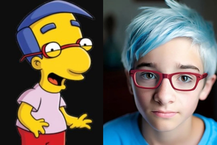 This AI-generated image nails the look—because what’s Milhouse without his iconic blue hair and those unforgettable red-rimmed glasses? The resemblance is almost uncanny!