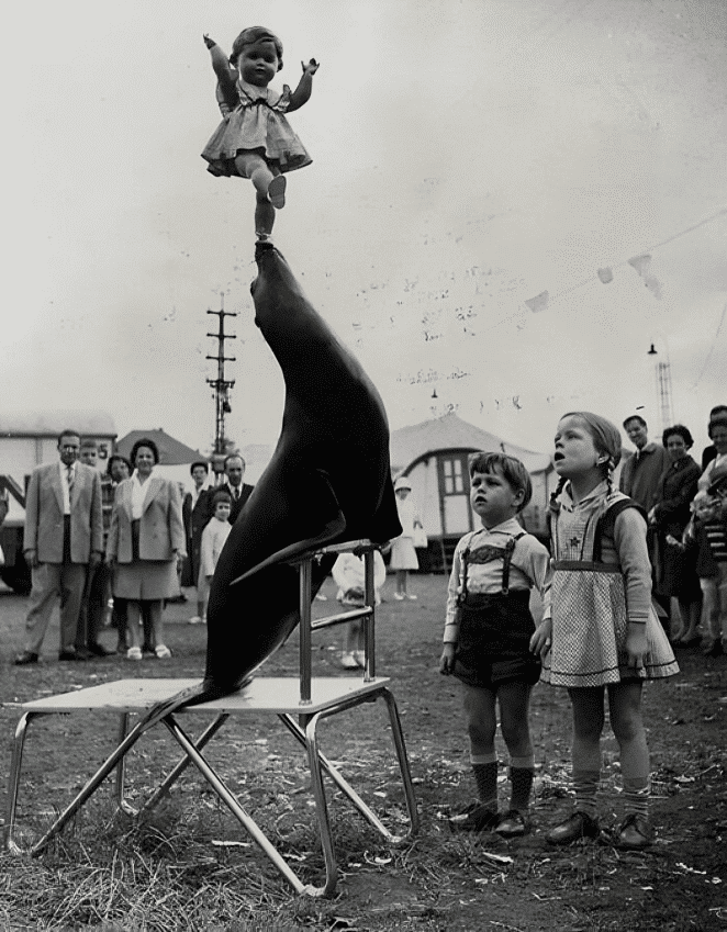 Nowadays, we’re far too advanced to make seals balance dolls on their noses, so it’s lucky that we have the pictures to look back on and remind ourselves. It’s a shame we also have photos of many other things that the human race has progressed beyond that maybe we’d rather forget.