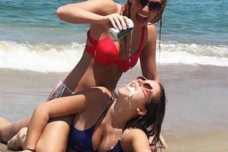 Questo non è il solito piano di idratazione da spiaggia, ma sta facendo scalpore. Tra le risate, la bevanda versata e la gioia caotica del momento, queste due amiche hanno trasformato la battigia nel loro palcoscenico. Non si tratta tanto di rimanere freschi quanto di divertirsi in un modo che ti lascia un sorriso stampato in faccia (e magari un po’ appiccicoso).