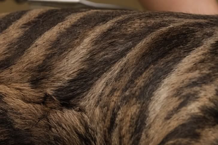 Der Tierarzt fuhr sanft mit den Fingern erneut über Nyx’s Fell und betrachtete, wie die Streifen perfekte Formen auf seinem Körper bildeten. „Es ist nicht nur, dass sie ungewöhnlich sind“, sagte er leise. „Es ist, dass sie fast zu präzise sind – zu konstruiert.“ Die Familie stand wie erstarrt da, jeder versuchte, die Bedeutung seiner Worte zu erfassen.