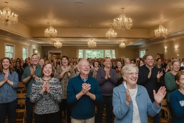 L’ovazione unificò la sala in un modo che pochi momenti possono fare. Sconosciuti si scambiarono cenni, amici si abbracciarono, e lo spirito collettivo era di ammirazione e gratitudine. La storia di Alan aveva toccato qualcosa di più profondo di una semplice ispirazione superficiale: aveva ricordato alle persone il potere della perseveranza, delle battaglie silenziose combattute e vinte. La celebrazione poteva essere terminata, ma l’impatto di quel momento sarebbe rimasto nei cuori di tutti molto tempo dopo che l’applauso si fosse spento.