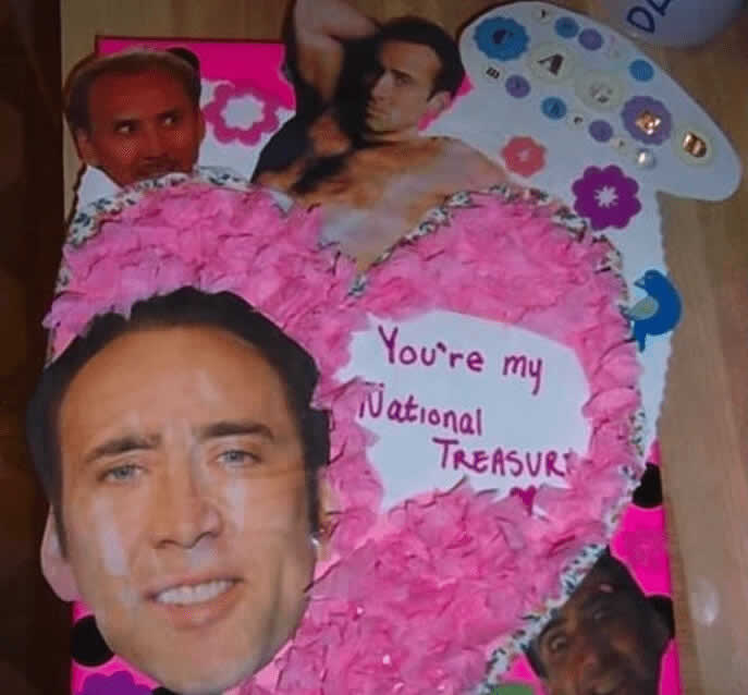 Nicolas Cage hat eine sehr spezielle Fangemeinde. Während manche seinen Schauspielstil seltsam finden, halten ihn seine eingefleischten Anhänger für ein Genie. Eine seiner berühmtesten Rollen inspirierte eine ganz besondere Valentinskarte, die davon handelt, „dein Herz zu stehlen“, so wie er die Unabhängigkeitserklärung gestohlen hat.