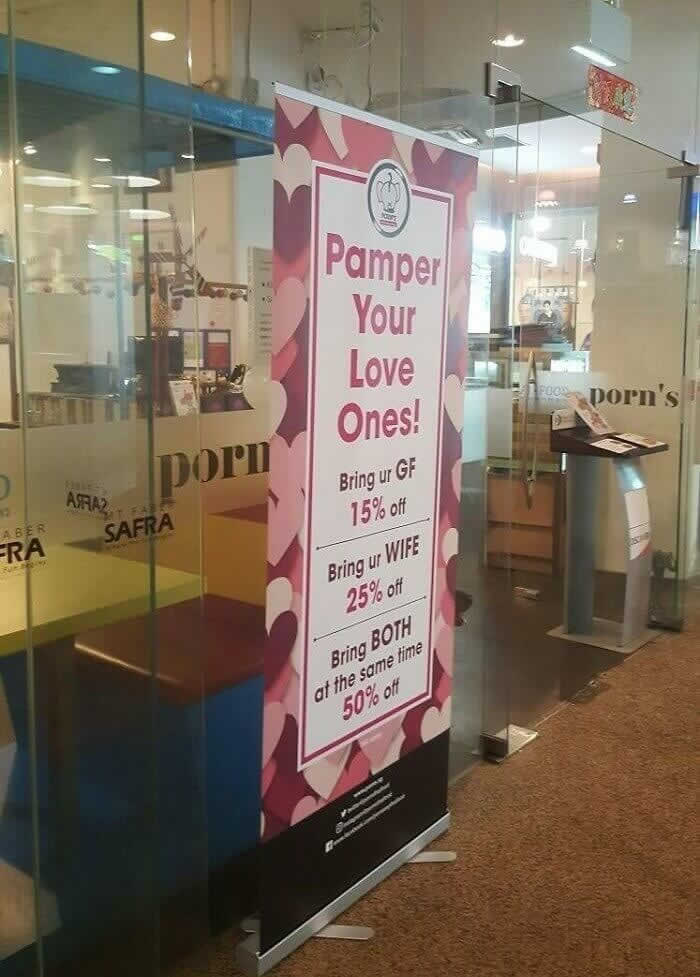 Unternehmen lieben Feiertagsaktionen, aber diese hier ist etwas extrem. Ein lokales Geschäft bot gestaffelte Rabatte an: 15 % Rabatt für Freundinnen und 25 % Rabatt für Ehefrauen. Der größte Deal war jedoch für jeden, der beide gleichzeitig mitbrachte.