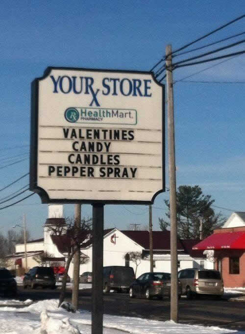 Sie haben alles auf Lager, von Süßigkeiten über Kerzen bis hin zu Pfefferspray. Vielleicht ist das Spray dafür gedacht, wenn das Date schlecht läuft? Es ist immer gut, auf jedes Szenario vorbereitet zu sein!