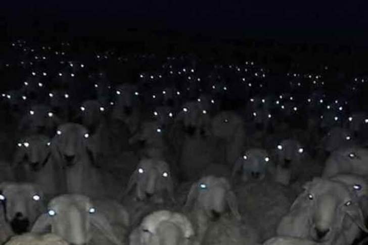 羊はとっても可愛い動物です。柔らかくて、ふわふわ&モコモコです。しかし、夜にフラッシュをたいて羊を撮影することはあまりオススメできません。だって真っ暗な中、たくさんの恐ろしい目があなたを見つめている写真が撮れるのですから。もし、写真の手前を見て “あぁ、これは羊か” と思わなければ、この写真は全く説明のつかないものになってしまうでしょう。