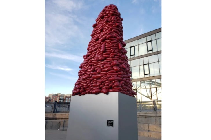 丹佛科羅拉多州的藝術家約翰·麥肯羅(John McEnroe)的作品「國家之戀」(National Velvet)怎麼樣?大家都知道也討論著我們的地獄野馬「藍魔」(Blucifer),但卻都忘了這座看起來像一堆塞滿水泥並漆成紅色的絲襪的雕塑。對我來說,它總是像一堆人類的腎臟。