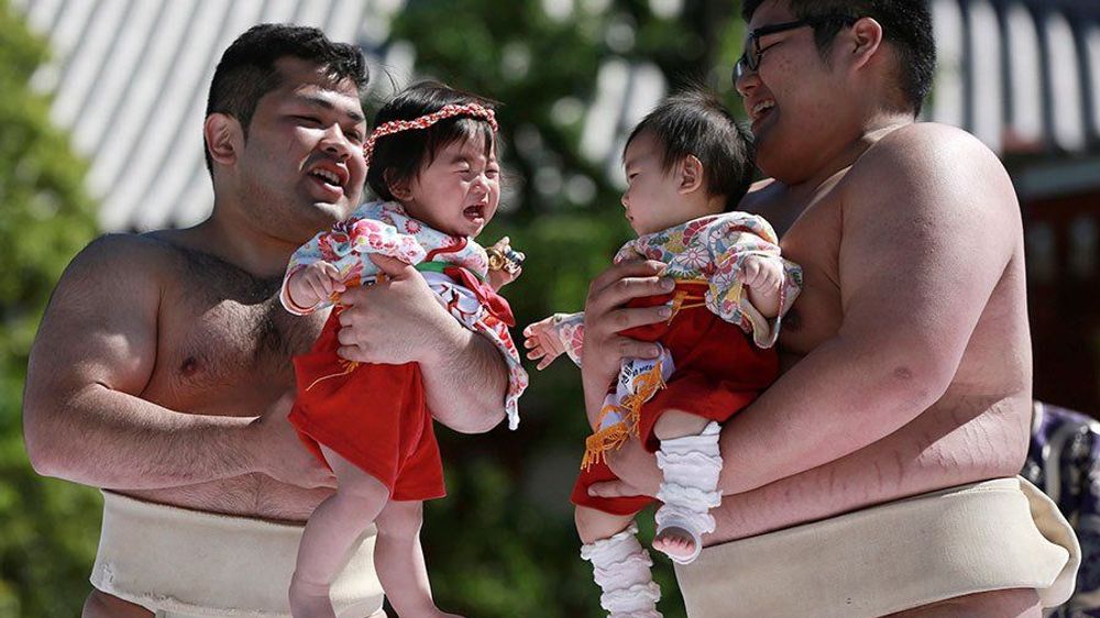 每年5月5日,日本都會舉行一項最可愛而獨特的傳統哭相撲祭。在人山人海的相撲場上,魁梧的相撲手們輕柔地抱著嚎啕大哭的嬰兒——因為在這場獨特的比賽中,眼淚就是勝利的象徵。第一個哭出來的嬰兒被宣佈為優勝者,在人群的歡呼聲中,哭泣不再是痛苦的表現,而是被視為神聖庇佑的象徵
