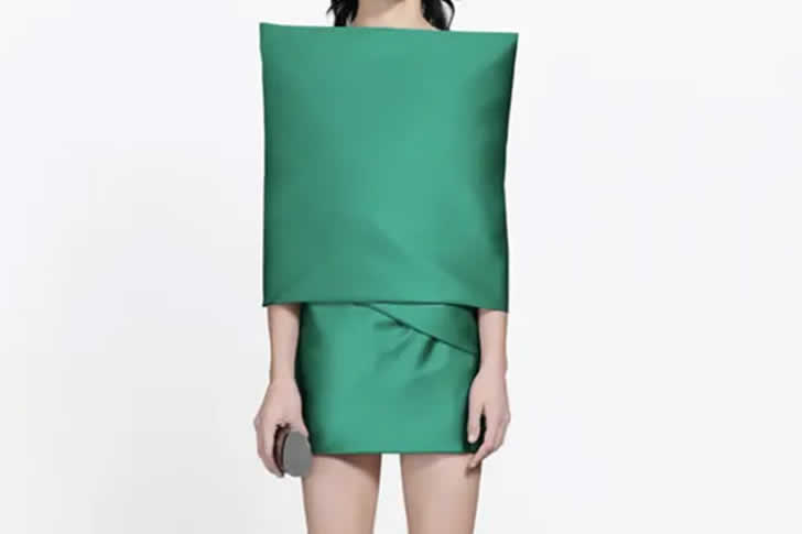 雖然高級時裝很喜歡幾何圖形,但這種造型把「方正」發揮到極致。對於想在晚宴上看起來像《當個創世神》(Minecraft)角色的人來說,這是終極選擇。你不得不佩服模特兒的平衡感——當你基本上穿著一件家具時,要保持優雅可不簡單!