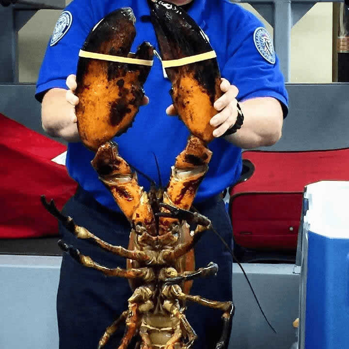 40 件 TSA 在機場查獲最瘋狂的物品 4. 機艙裡的甲殼類動物 Advertisements 如果你覺得「飛機上有蛇」的梗很奇怪,那不妨想想有人把活龍蝦帶到機場的狀況吧。令人驚訝的是,只要包裝妥當,龍蝦是被允許放在隨身行李和托運行李中的。 Advertisements 上頁下一頁 為了避免海鮮引發的安全漏洞,這些小動物必須裝在防溢容器裡。沒人想處理一隻失控的龍蝦在航廈裡亂爬,或是在長途飛行中逃到頭頂置物櫃裡吧! Advertisements PREV NEXT PAGE
