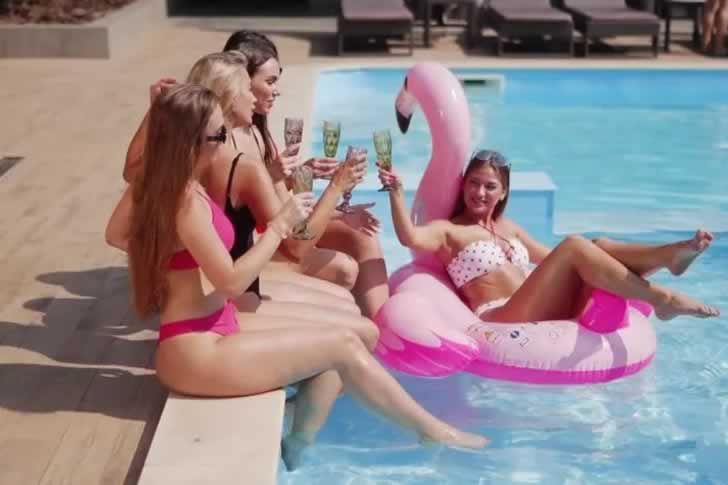 在一個奢華度假村的泳池派對上,潔西卡小心翼翼地爬上一個巨大的充氣天鵝,一手拿著香檳,另一手保持平衡。陽光在波光粼粼的水面上閃耀,金色的倒影灑落在她的金屬比基尼上。朋友們慵懶地躺在五顏六色的沙灘椅上,舉著手機,捕捉每個角度,只為拍出完美的慢動作社群媒體短片。空氣中飄蕩著歡笑聲和附近DJ播放的音樂,與輕輕拍打的波浪聲融為一體。每一個細節——閃爍的水面、晶瑩的飲料和好玩的浮具——都為Instagram的輝煌時刻做足了準備。