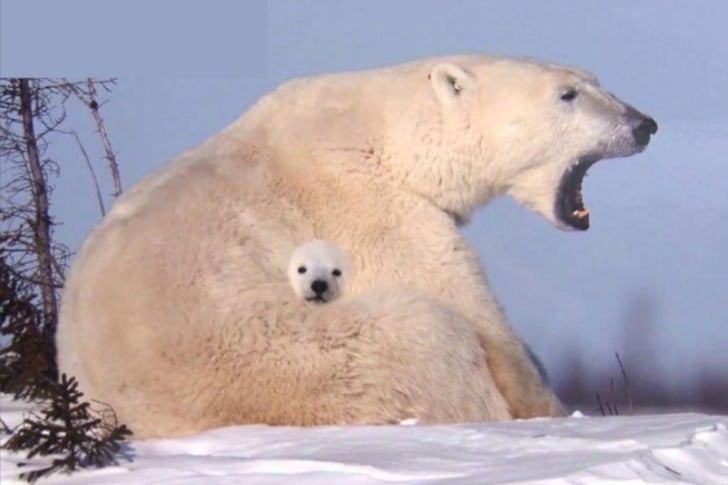 #4 This Baby Polar Bear’s Face Looks Like It Was Photoshopped To It’s Mother’s Side