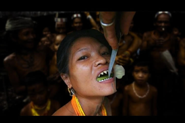 Tooth sharpening is an ancient custom practiced in various cultures including the Maya, certain African tribes, and Indonesian communities. Teeth were filed to points as a form of body modification with spiritual or social meaning. It could symbolize strength, adulthood, beauty, or readiness for marriage depending on the culture.