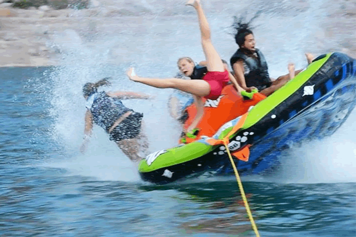 Dichters hebben de golven beschreven als het komen en gaan van gebeurtenissen in het leven. Los van de vluchtige blikken en vergankelijke momenten die de zee oproept, lijkt er nog een andere manier te zijn om ervan te genieten: waterskiën achter een rubberboot. Het is duidelijk hoe wild de zee soms kan zijn, zoals de meisjes op deze perfect getimede foto laten zien. Denken dat raften gewoon een boottochtje is, was waarschijnlijk de grootste vergissing die ze nooit meer zullen maken.
