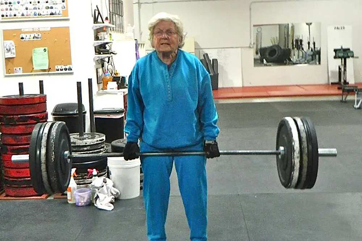 Unsere 82-jährige Powerfrau hier hat gerade ihren persönlichen Rekord im Kreuzheben geknackt – stolze 153 Pfund! Wenn das kein Motivationsschub für Ihren nächsten Gym-Besuch ist, dann wissen wir wirklich nicht weiter.