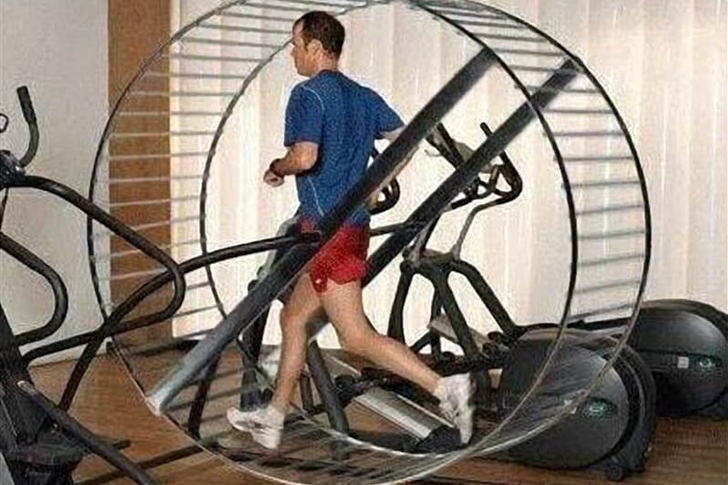 Im Fitnessstudio-Wettkampf um die innovativste Trainingsmethode hat dieser Sportler jetzt wohl den ersten Preis gewonnen! Während andere noch mit klassischen Hanteln und Geräten trainieren, hat er das Konzept des menschlichen Hamsterrads perfektioniert.