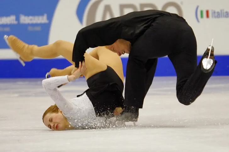 O que acontece quando uma dançarina que confia em suas habilidades de ritmo se vê de repente em um gelo escorregadio com lâminas de metal sob os pés? Exatamente: um tombo espetacular!